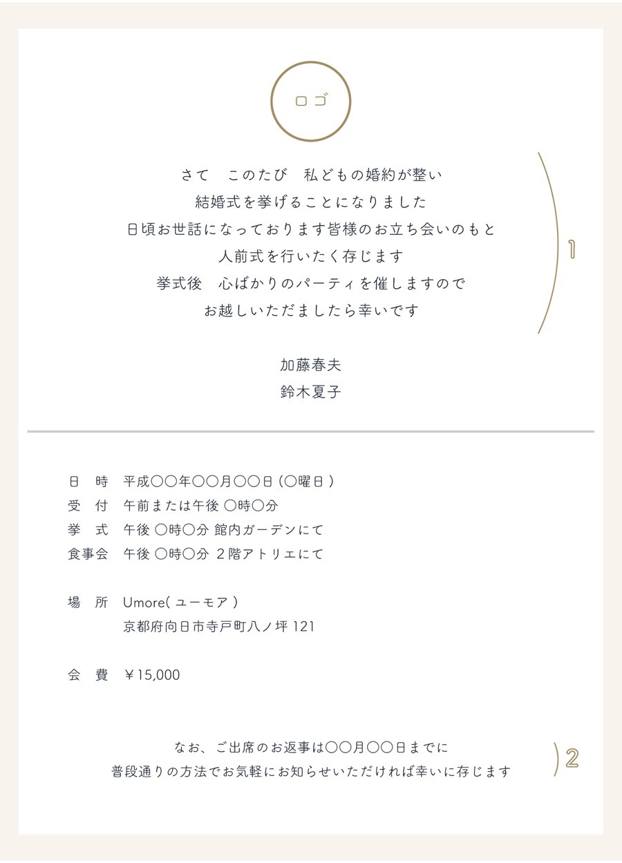 Umoreでは返信はがきを入れず、「お越しいただける方」へのご案内状とする方が多いです。